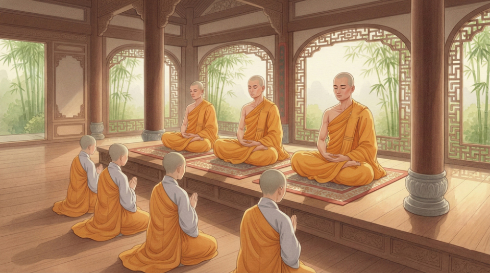Nếu người đi xuất gia ở Ni chúng (thiền viện hay chùa Ni) thì mỗi nửa tháng họ phải cầu thỉnh chư Tăng đến giảng dạy một lần.