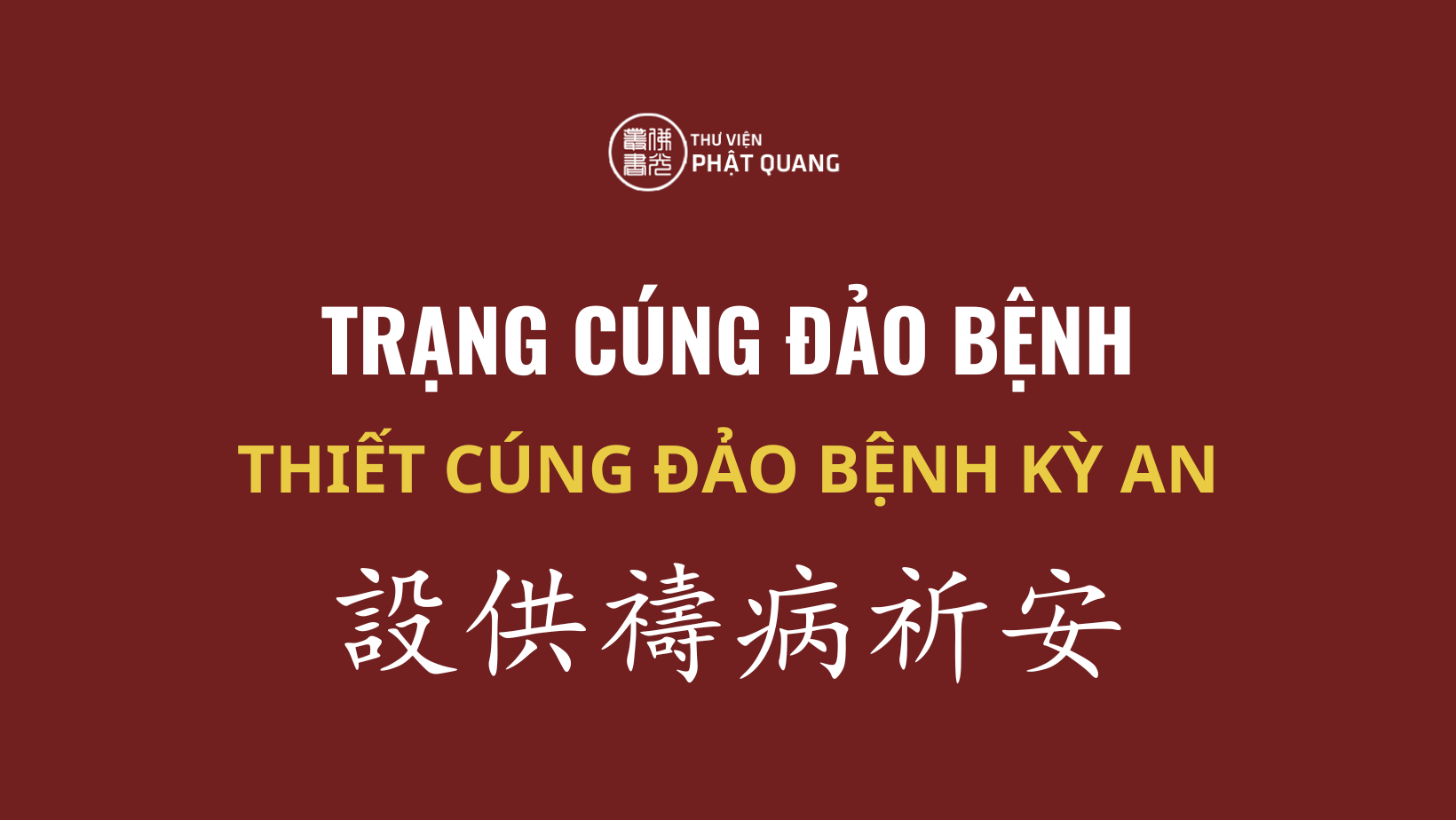 Thiết Cúng Đảo Bệnh Kỳ An Vị trạng ngưỡng sự. Tư cứ: Việt Nam Quốc ... Tỉnh, … Huyện (Quận), … Xã, … Thôn, gia cư phụng Phật Thánh thiết cúng đảo bệnh kỳ an tăng long phước thọ sự. Kim tín chủ ... đẳng, quyên thủ bổn nguyệt cát nhật, cẩn dĩ kim ngân...