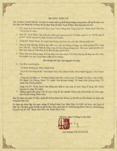 DI CHÚC TANG LỄ Tôi, Tỳ-kheo Thích Tuệ Sỹ, với tâm trí minh mẫn, tự biết thân mang trọng bệnh, để lại Di chúc sau đây cho chư Pháp lữ và hàng đệ tử thực hiện tổ chức Tang lễ theo tâm nguyện của tôi: 1. Kim quan quản tại chùa Phật Ân, Long Thành,......