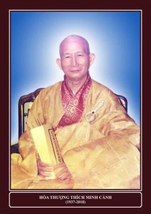 Vốn sanh trong gia đình trung lưu phúc hậu, nhiều đời kính tin Tam bảo, sâu trồng ruộng phước Tăng già, đặc biệt là có bốn anh chị xuất gia nơi cửa Phật, vì vậy Hòa thượng đã bén duyên với cửa Phật khi tuổi còn rất nhỏ. Năm 1945, Hòa thượng được HT.Huệ Hưng dẫn đến chùa Long An, ở Sa Đéc thọ học với HT.Hành Trụ, được ban pháp danh Minh Cảnh.