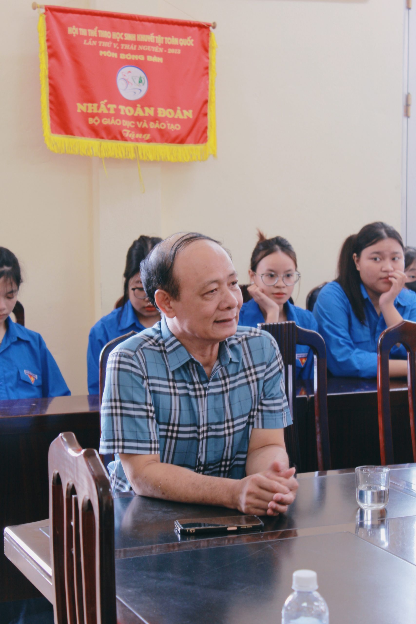 Dẫn đoàn có Đại đức Thích Tâm Thắng, thay mặt chư Tăng Phật Quang Thiền Tự; phía nhà trường có sự hiện diện của Thầy Trần Bá Trinh – Bí thư Chi bộ, Hiệu trưởng nhà trường cùng quý thầy cô giáo, để tiếp đoàn và chung vui cùng các em học sinh.