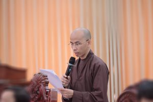 Nghiên cứu sinh Nguyễn Hữu Thắng đã trình bày tóm tắt nội dung và những điểm đóng góp của Luận án trong nghiên cứu A-tỳ-đàm và tu tập Thiền Tuệ.