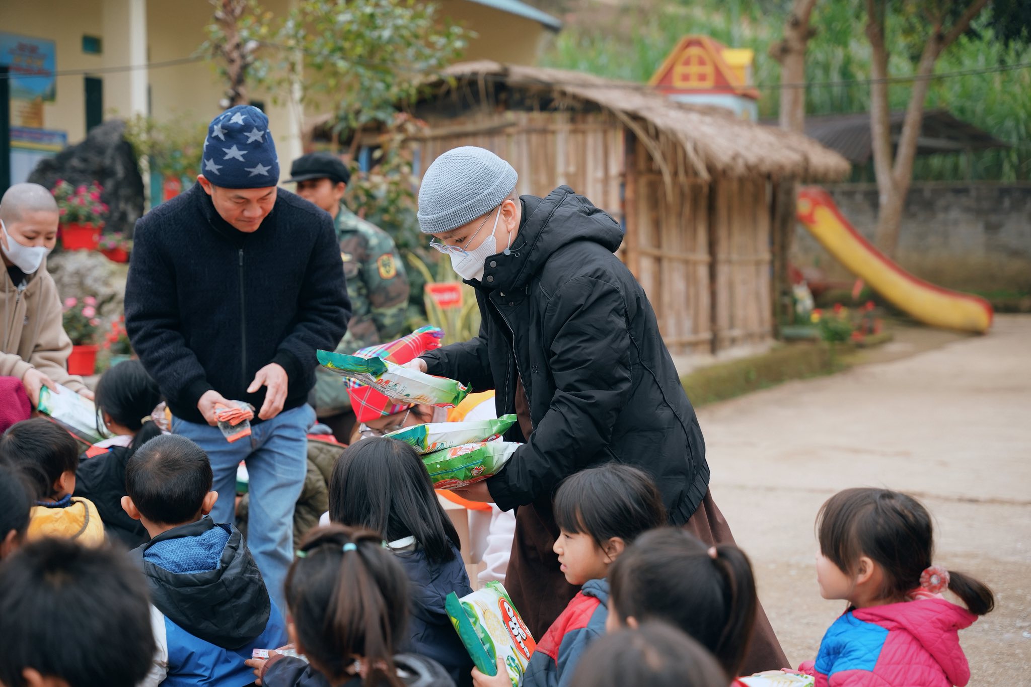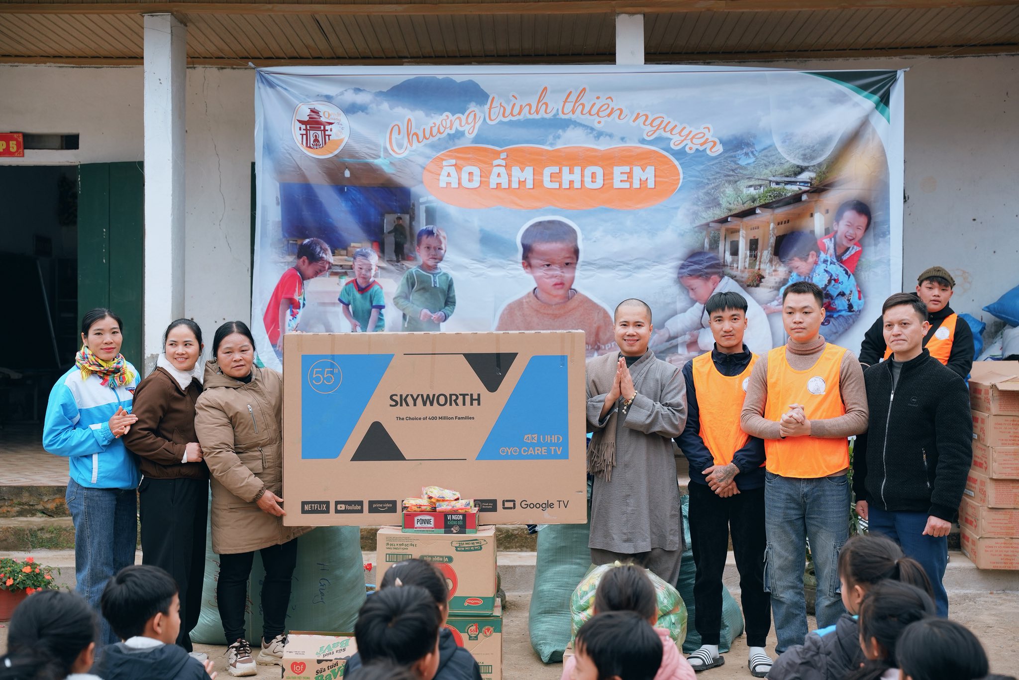 Với tinh thần từ bi, sẻ chia và phụng sự, đoàn đã trao tặng cho các em học sinh những phần quà thiết thực gồm: áo ấm mùa đông, mũ len, tất, giày dép, chăn ấm, đồ dùng học tập và bánh kẹo dinh dưỡng. Đồng thời, chương trình cũng trao tặng trang thiết bị cho nhà trường nhằm hỗ trợ công tác giảng dạy và sinh hoạt học đường.